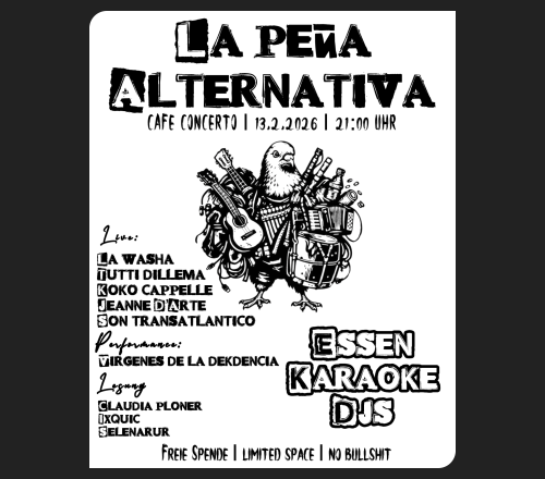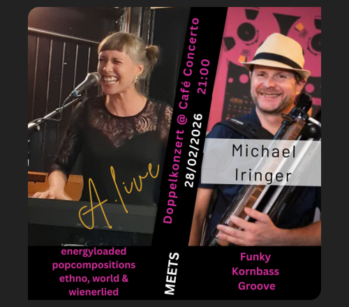 Das Café Concerto nimmt in Wiens Music-Clubszene eine besondere Stellung ein: jeden Abend Livemusik von Rock über World Music und Singer-Songwriter bis Reggae oder Jazz. Eine bunte Vielfalt an DJ-Lines. Jazz-, und Folksessions und Open Mic Nights, Karaoke, Partykeller...